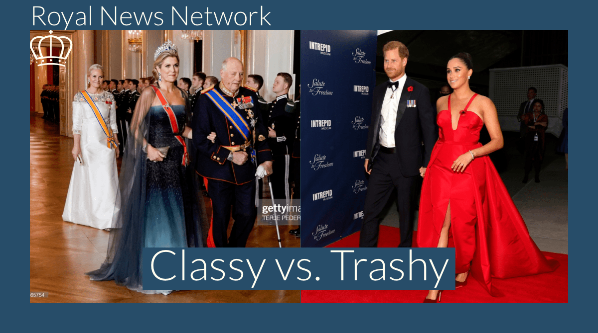 This latest appearance is just another embarrassing display for Meghan, who’s desperation and competitive nature with the royal family shows that she never could compete. She’s low rung, and this dress proves it.